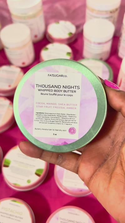 Mysterious and enchanting! Our Thousand Nights mini whipped body butter features an exotic, alluring scent inspired by Arabian nights. This travel-sized luxury delivers deep, lasting moisture while wrapping you in an unforgettable fragrance.